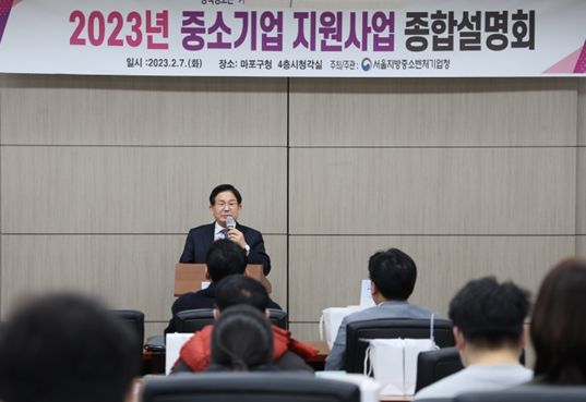 [제주교통복지신문 김강석 기자] 박강수 마포구청장이 7일 오후, 마포구청에서 열린 ‘2023 중소기업 지원사업 설명회’에 참석해 중소기업 및 소상공인의 경영 안정을 격려했다.