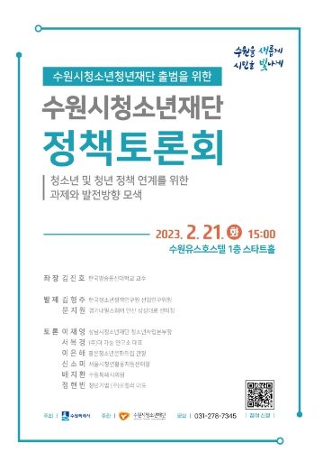 [제주교통복지신문 김강석 기자] 수원시청소년재단은 오는 2월 21일 '수원시청소년재단 정책토론회'를 개최한다.