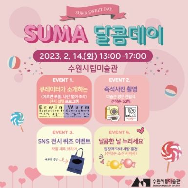'SUMA 달콤 DAY'인 2월 14일(화)에 미술관을 방문하는 관람객에게 선착순으로 막대 사탕을 증정한다. 같은 날 오후 3시에는 《에르빈 부름: 나만 없어 조각》을 기획한 박현진 큐레이터가 직접 전시를 소개한다. 전시해설 중 즉석 질의응답을 통해 작가 에르빈 부름이 직접 서명한 전시 포스터가 특별 경품으로 제공된다. 이와 함께 선착순 50팀을 대상으로 미술관에서 추억을 남길 수 있는 즉석 사진을 촬영 행사도 진행될 예정이다.