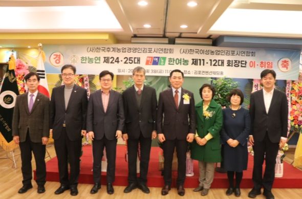 [제주교통복지신문 김강석 기자] ㈔한국후계농업경영인김포시연합회와 (사)한국여성농업인김포시연합회는 지난 3일 김포시 북변동 소재 김포컨벤션웨딩홀에서 회장 이·취임식을 개최했다.