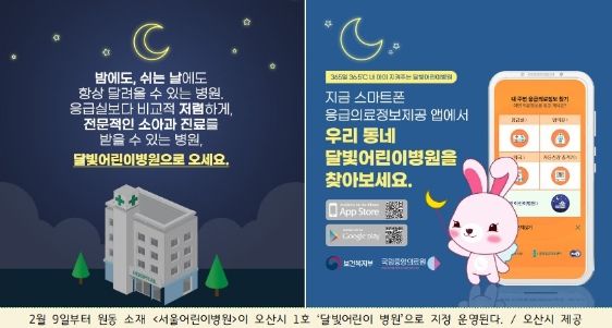 [제주교통복지신문 김강석 기자] 경기 오산시에 1호 달빛어린이병원으로 소아전문의료기관인 서울어린이병원(경기대로 209)이 지정되어 오는 9일부터 운영을 시작한다.
