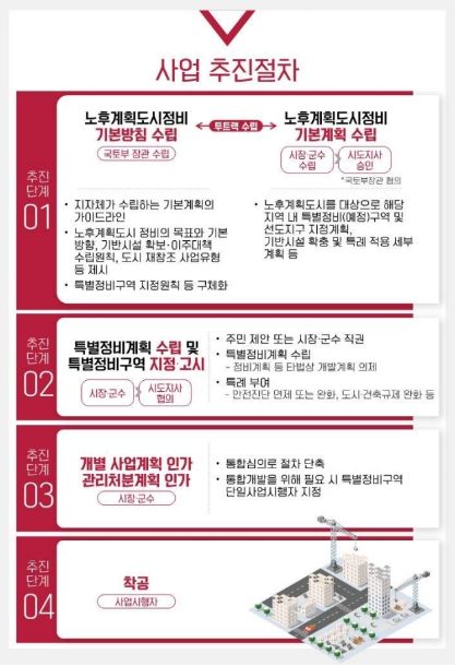 질서 있고 체계적인 정비를 위해 국토부 수립 가이드라인인 「노후계획도시정비기본방침」(이하 ‘기본방침’)과 지자체가 수립하는 세부계획인 「노후계획도시정비기본계획」의 근거를 명확화했다.