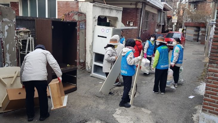 이날 행복마을관리소 지킴이들은 곰팡이가 핀 벽지를 뜯어낸 후 곰팡이가 생기지 않도록 조치했으며, 망가진 가구, 냉장고 등 가전제품 등을 끄집어내고 생활쓰레기 등을 청소했다.