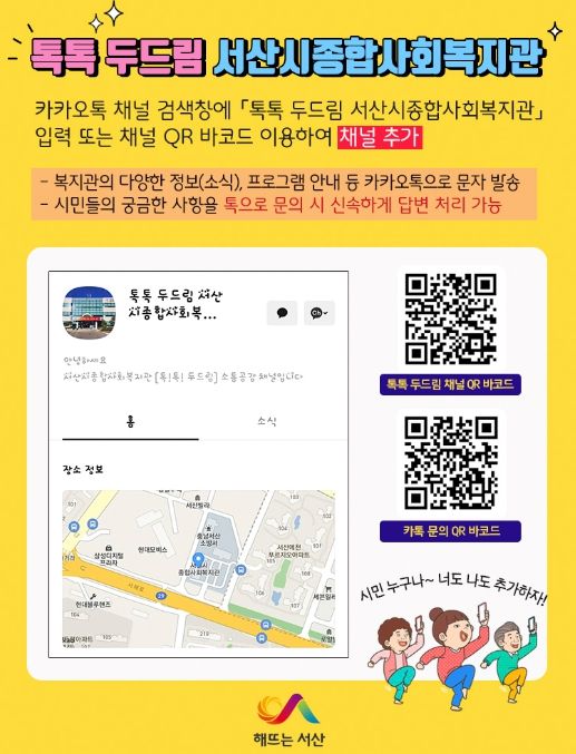 [제주교통복지신문 김강석 기자] 충남 서산시는 시민들과의 소통․공감을 위한 톡톡 두드림 서산시종합사회복지관 카카오톡 채널을 개설했다고 밝혔다.