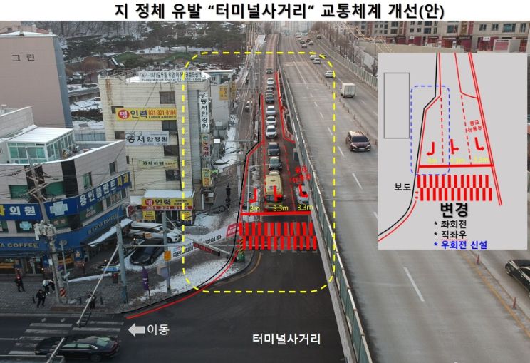구 관계자는 “교통체계 개선으로 출퇴근 시간대 지·정체 행렬이 줄어들고 터미널사거리의 교통흐름이 원활해질 것으로 기대한다”며 “앞으로도 상습 정체구간이나 사고 위험이 높은 구간을 찾아내 개선하겠다”고 말했다.