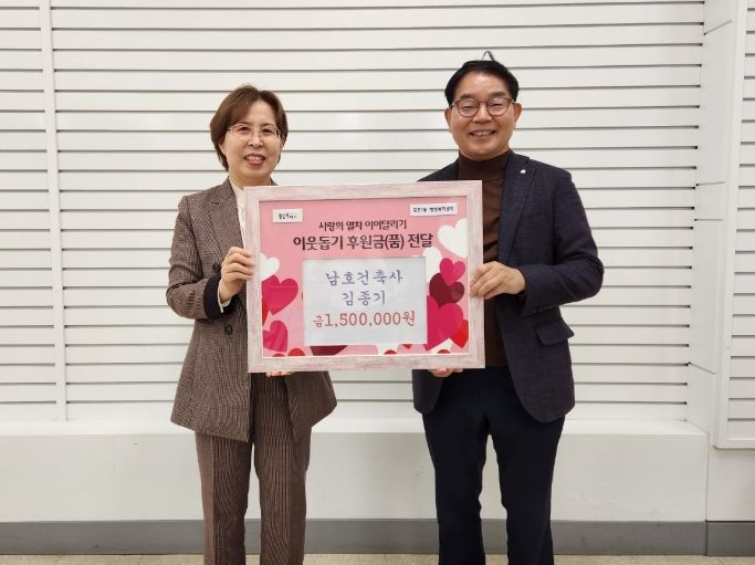 동 관계자는 "여러 가지 어려움에 처한 이웃을 돕기 위해 남호건축사사무소가 따뜻한 나눔을 실천해줘 감사하다"며 "기탁해 주신 성금은 저소득가정 이웃에게 잘 전달하겠다"고 말했다.