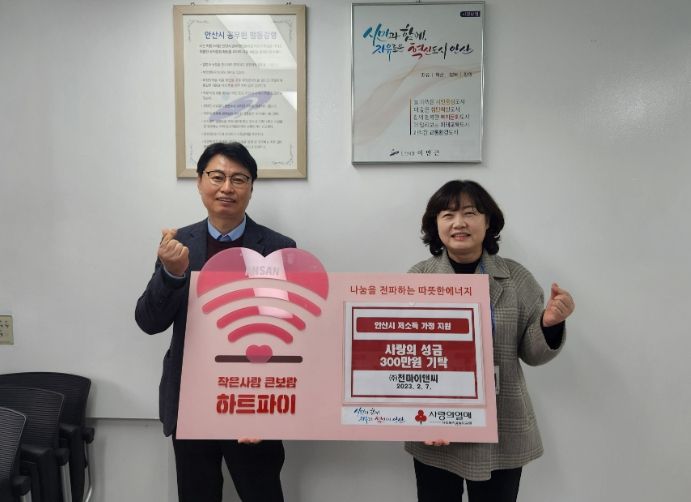 [제주교통복지신문 김강석 기자] 안산시는 지난 7일 ㈜천마이앤씨로부터 관내의 어려운 이웃을 돕기위한 후원금 300만 원을 기탁받았다고 8일 밝혔다.