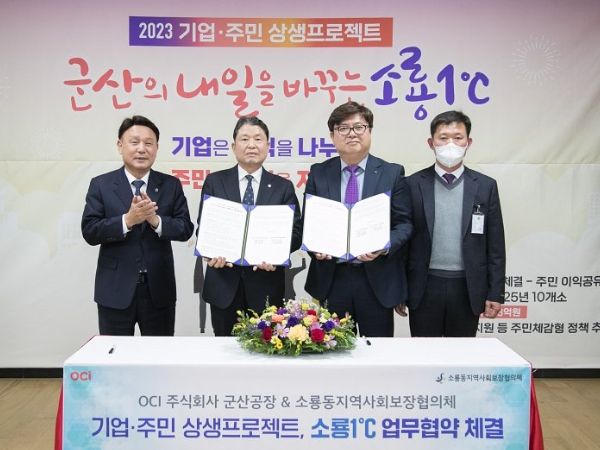 이날 행사에는 소룡동지역사회보장협의체와 OCI 주식회사 군산공장간 첫 업무협약을 맺고, OCI 정기 기탁 기부와 함께 관내 소외계층 발굴 및 지원사업을 추진하기로 협의했다.