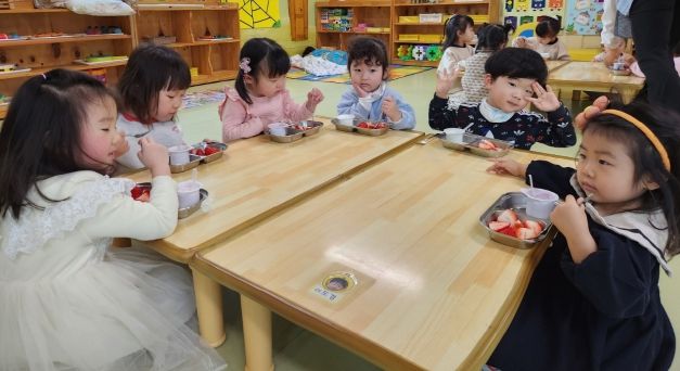‘어린이집 과일간식 지원사업’은 어린이들의 식습관을 개선하고 균형 잡힌 영양을 공급하면서 지역에서 생산되는 과일 소비를 촉진해 농가의 소득 향상을 목적으로 제철과일을 1주 1회정도 관내 원아 1인당 100g씩 연간 45회 제공하는 사업이다.
