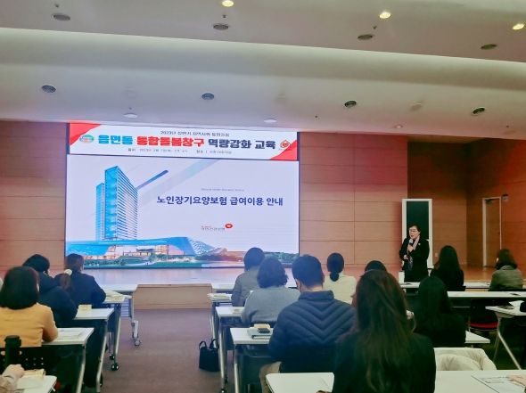 교육은 건강보험공단 요양급여 담당 주선옥 차장을 초빙해 지역사회 통합돌봄에 대한 이해와 요양등급 판정에 따른 서비스 지원 및 연계 등에 대해 설명했다.