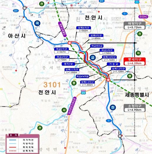 [제주교통복지신문 김강석 기자] 천안시가 곡교천 등 하천에 국비 1,615억 원을 투입해 재해로부터 안전하게 시민을 보호하고 친수공간까지 두루 갖춘 ‘명품하천 조성’에 나선다.