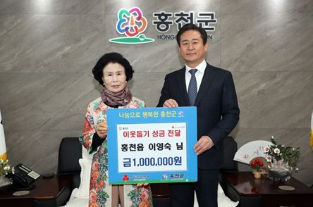 [제주교통복지신문 김강석 기자] 홍천읍에 거주하고 있는 이영숙씨는 8일 홍천군청을 방문해 이웃돕기 성금 100만원을 전달했다.