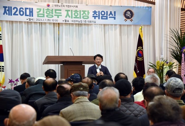 [제주교통복지신문 김강석 기자] 의정부시은 (사)대한노인회 의정부시지회가 2월 7일 의정부농협 3층 강당에서 (사)대한노인회 경기도연합회 이종한 회장, 의정부시지회 임원들과 경로당 회장, 김동근 의정부시장, 김민철 국회의원, 오영환 국회의원, 최정희 의정부시의회 의장 등 280여 명이 참석한 가운데 ‘제26대 지회장 취임식’을 개최했다고 밝혔다.