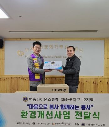 최주환 백송라이온스클럽 회장은 “다문화가정이 점차 늘어나고 있는 만큼 우리 지역에서도 꾸준히 관심을 갖고 다문화가정과 함께 해야 한다”며 “지원한 물품을 통해 다문화가족들이 쾌적한 환경에서 활동하기를 바란다”고 전했다.