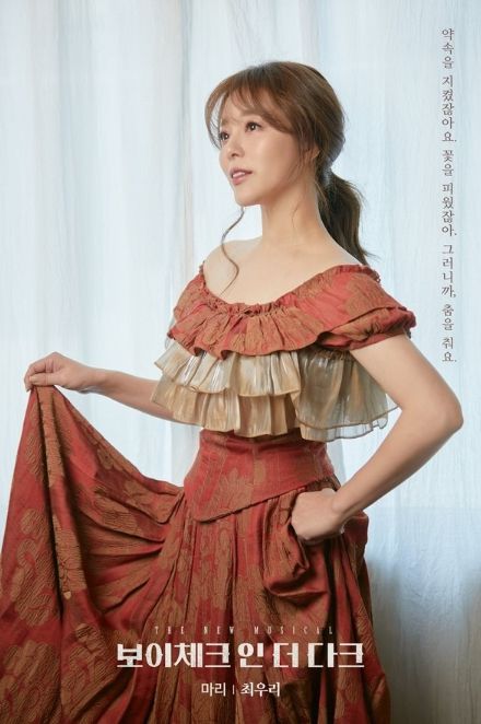 최우리는 카바레에서 노래를 부르는 마리가 돈을 벌기 위해 군인이 된 보이체크와 서로의 지친 마음을 위로하며 사랑에 빠지게 되는 과정 등을 섬세한 연기력으로 선보일 예정이다.