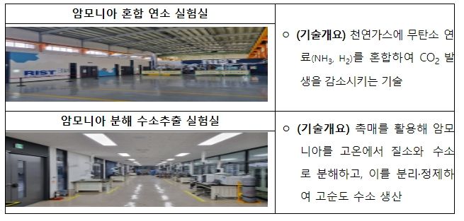 간담회에 이어 오태석 차관은 포항산업과학연구원의 연구현장(암모니아 혼합 연소 실험실, 암모니아 분해 수소추출 실험실 등)에 방문하여 온실가스 배출 절감을 위해 노력하고 있는 현장 연구자를 격려하는 시간을 가졌다.