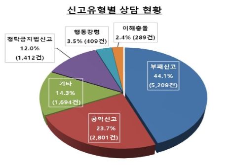 국민권익위원회는 지난해 운영한11,814건의 ‘부패․공익신고 상담’ 통계를 분석, 그 결과를 발표했다.