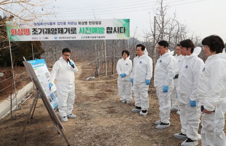 농식품부, 농진청, 경상북도 농업기술원과 안동시농업기술센터는 지난해 12월부터 오는 4월까지 겨울철 화상병 사전예방 특별대책기간을 운영하고 전국의 사과와 배 과수원을 대상으로 병 잠복처인 궤양 제거를 집중적으로 추진하고 있다.