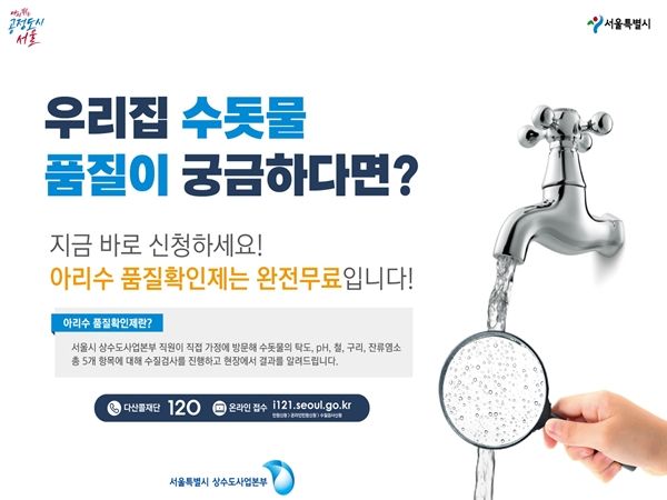유연식 서울시 상수도사업본부장은 “서울시는 세계 최고 수준의 수질관리는 물론, 주기적으로 수도관을 교체‧세척하는 등 공급과정 또한 꼼꼼히 관리하고 있다”며 “고품질의 아리수를 각 가정까지 안전하게 공급해 누구나 믿고 먹을 수 있도록 최선을 다하겠다”라고 말했다.