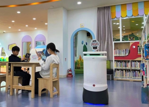 인공지능 방역로봇은 24시간 도서관 내부를 자율주행하면서 바닥과 공기 중의 세균을 살균한다.
