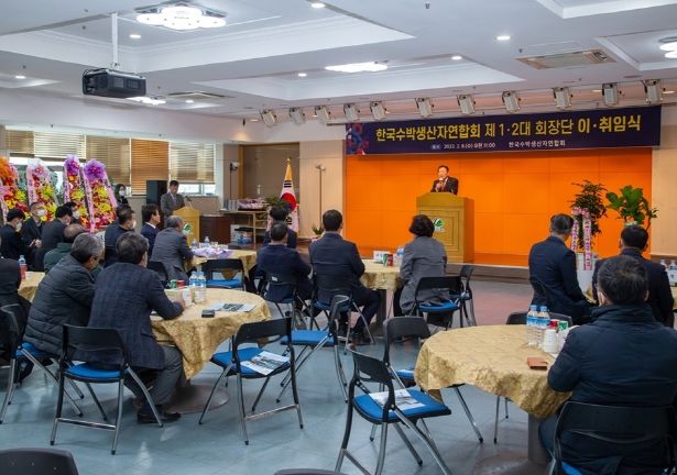 [제주교통복지신문 김강석 기자] 한국 수박생산자연합회 이·취임식이 8일 오전 11시 함안문화예술회관 연회장에서 개최됐다.