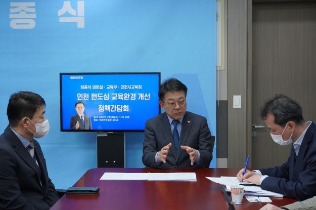 더불어민주당 허종식 국회의원 (국회 국토교통위원 , 인천 동구미추홀구갑) 은 8 일 오전 교육부 , 인천시교육청과 ‘ 인천 원도심 교육환경 개선을 위한 정책간담회 ’ 를 개최 , 학교 신 ‧ 증설 권한을 교육부에서 시 ‧ 도교육청으로 이관하는 방안에 대해 논의했다고 밝혔다.