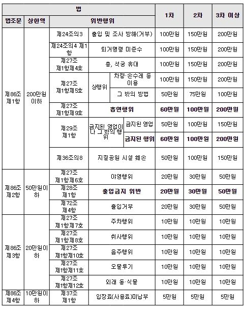 국립공원에서 통제된 탐방로를 허가 없이 출입할 경우 최대 50만 원의 과태료가 부과되고 인화물질을 소지하거나 흡연할 경우에는 최대 200만 원의 과태료가 부과된다.