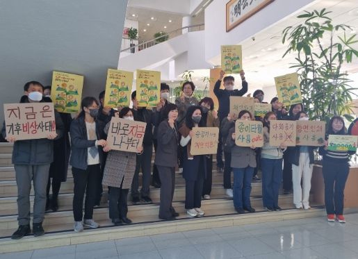 박진열 기후환경국장과 함께 기후대기과 직원들이 폐지로 직접 제작한 피켓을 들고 캠페인을 진행했다. 공직사회의 탄소중립 실천 공감대 형성과 참여를 이끌어내기 위해 ‘기후행동 5가지 실천운동’을 매주 수요일마다 PC 부팅시 첫 화면에 표출하고, 전 실·과·소에 ‘지금은 기후비상사태! 공무원 나부터!’ 홍보문을 부착할 예정이다.