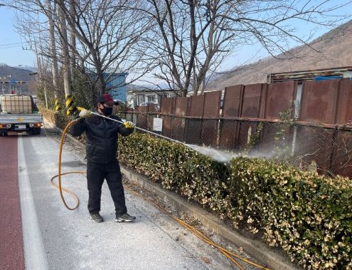 [제주교통복지신문 김강석 기자] 김천시에서는 지난겨울 제설작업에 따른 염화칼슘 피해를 입은 봉산면 덕천리 영남대로의 수벽(사철나무)과 턱화단(회양목) 가로수 및 조경지의 나무에 대해 세척 작업과 엽면시비 작업을 실시했다.