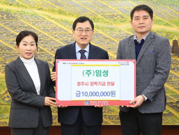 이에 주낙영 경주시장학회 이사장은 “자라나는 학생들과 지역의 어려운 이웃을 위해 선행을 베풀어준 (주)임성에게 감사하며 기탁한 장학금은 가정 형편이 어려운 인재들을 위해 소중하게 잘 사용하겠다”고 전했다.