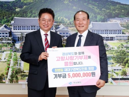 [제주교통복지신문 김강석 기자] 경북도는 최병일 재대구경북도민회장이 지난 6일 도청을 찾아 고향사랑기부제 최고 한도액인 500만원을 전달했다고 밝혔다.