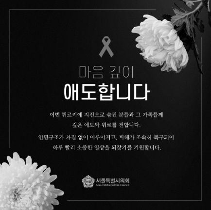 김현기 의장은 “불가항력의 강진으로 큰 인명피해를 입은 튀르키예 국민들에게 깊은 애도를 표한다”라며, “현재 피해 규모가 계속 커지고 있는 상황인 만큼, 서울시에 지속적인 관심과 추가 지원 방안 마련을 촉구하겠다”라고 말했다.