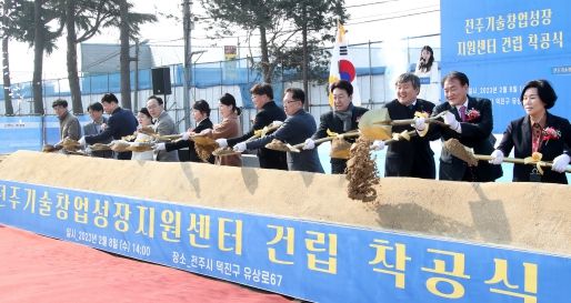 시는 8일 팔복동 전주첨단벤처단지에서 우범기 전주시장과 이기동 전주시의회 의장, 중기부와 전북도 관계자, 입주기업 관계자 및 유관기관 단체장 등 200여 명이 참석한 가운데 중소기업의 입주 애로 해결 및 지역경제 활성화를 위한 공간인 전주기술창업성장지원센터 건립 착공식을 가졌다.