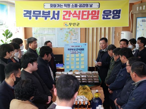 [제주교통복지신문 김강석 기자] 전남 무안군은 지난 8일 직원 간 소통을 강화하고 긍정조직 문화형성을 위한 첫 걸음으로 찾아가는 ‘간식 가즈아 타임’을 가져 큰 화제가 되고 있다.