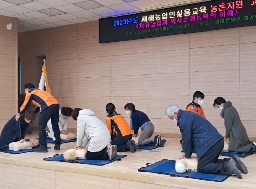 앞서 산청군은 지난 2일 산청군농업기술센터 미래생명관에서 열린‘ 2023년 새해농업인실용교육’ 현장을 찾아 30여 명을 대상으로 심폐소생술 등 안전교육을 실시했다.