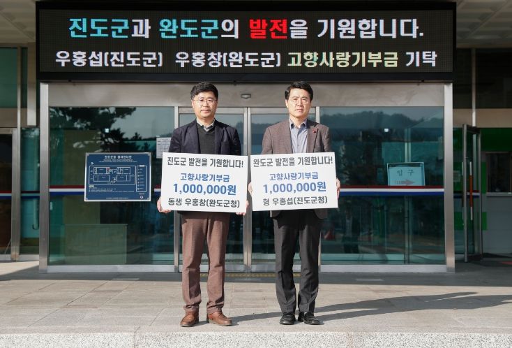 어려서부터 돈독한 우애를 자랑하던 두 형제는 올해 시행된 고향사랑기부제의 활성화를 위해 형은 완도군에 기부하고 동생은 진도군에 각각 기부했다.