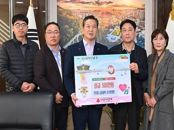 [제주교통복지신문 김강석 기자] 대구광역시 남구청은 지난 8일, 안지랑 곱창골목 상가번영회에서 남구청을 찾아 사랑의 이웃돕기 성금 500만원을 기탁했다고 9일 밝혔다.
