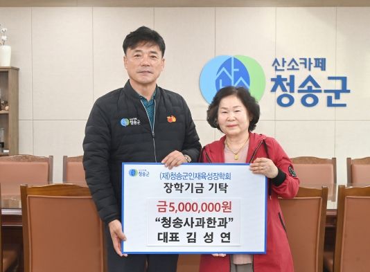 [제주교통복지신문 김강석 기자] 청송지역농산물을 이용해 전통방식으로 한과를 만들고 있는 “청송사과한과” 김성연 대표가 지난 2월 7일 (재)청송군인재육성장학회를 찾아 장학금 5백만원을 기탁했다.