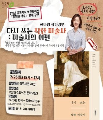 [제주교통복지신문 김강석 기자] 청주시는 오는 25일 청주오창호수도서관에서 ‘유쾌한 책방’과 연계한 작가강연을 개최한다고 9일 밝혔다.