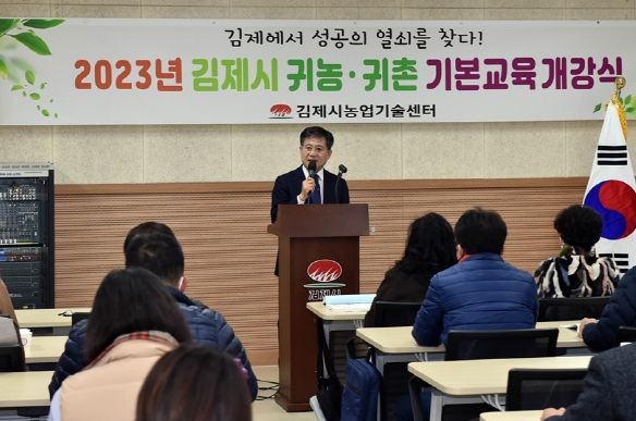 [제주교통복지신문 김강석 기자] 김제시에서는 2023년 2월 9일 농업인교육문화지원센터 3층 대강의실에서 안정적인 귀농 정착을 위한 '2023년 상반기 귀농귀촌 기본교육 개강식'이 귀농귀촌을 희망하는 50여명의 교육생이 참석한 가운데 치러졌다.