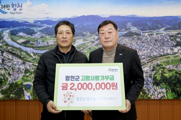 [제주교통복지신문 김강석 기자] 합천군은 고향사랑기부제가 점차 활기를 띠고 있는 가운데, ㈜태백토건 김병조 대표이사(52세, 부산 거주)가 9일 합천군을 방문해 고향사랑기부금 200만원을 기탁했다고 밝혔다.