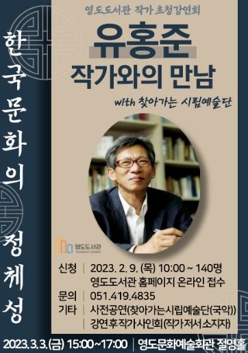 [제주교통복지신문 김강석 기자] 영도도서관이 오는 3일 유홍준 작가를 초청하여 영도문화예술회관 소공연장(절영홀)에서 작가와의 만남을 개최한다.