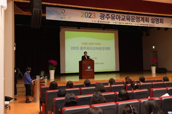 [제주교통복지신문 김강석 기자] 광주시교육청이 9일 광주학생독립운동기념회관 강당에서 관내 공·사립유치원 교원 및 교육전문직원 등 300여 명을 대상으로 ‘2023학년도 광주유아교육운영계획 설명회’를 개최했다.