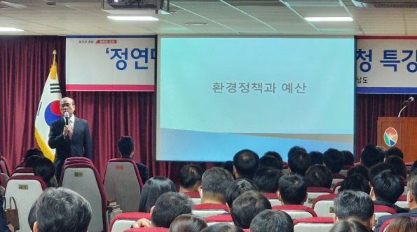 이날 회의에서는 식전행사로, ‘정연만’ 환경부 (전)차관을 초청해 특강을 듣는 자리를 마련했다. 정 전차관은 1983년부터 2016년까지 30년이 넘는 기간 동안, 환경부의 주요 요직들을 거쳐 온 환경분야 전문 행정가로서, 중앙부처 정책수립과정 뿐만 아니라, 국비사업 확보 방안 등 지방의 환경담당 공무원들의 업무추진에 실질적인 도움이 되는 강의를 했다.