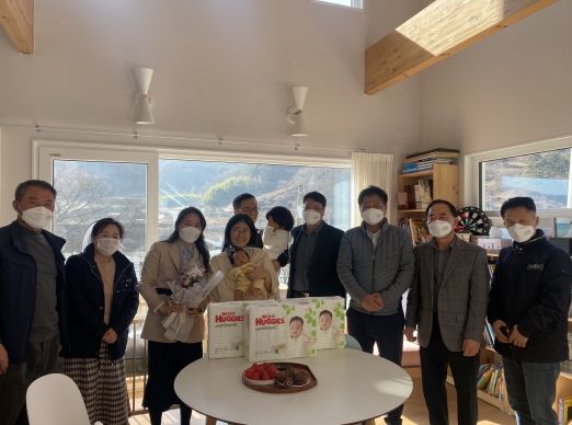 이날 임춘구 면장과 조병욱 이장자율협의회 회장, 채한식 주민자치회 회장은 출산가정을 방문해 선물과 함께 축하 인사를 전했다.