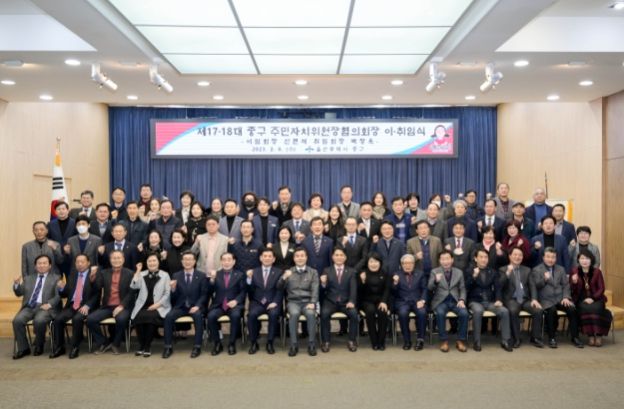 중구 주민자치위원장협의회(회장 박창욱)는 8일 오후 6시 중구청 대회의실에서 제17·18대 중구 주민자치위원장협의회 회장 이·취임식을 개최했다.