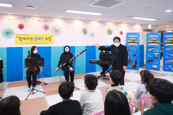 『어린이 클래식 교실』은 평소 클래식 음악이나 관현악기를 접하기 힘든 초등학생들을 직접 찾아가서 악기에 대한 설명과 함께 클래식 공연을 선보이며 학생들이 클래식에 대해 흥미를 갖고 친근하게 접근할 수 있는 기회를 제공하고자 기획됐다.