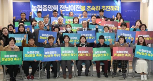 [제주교통복지신문 김강석 기자] 전라남도는 9일 전남도의회 브리핑룸에서 (사)전라남도농업인단체연합회가 ‘농협중앙회와 농협은행 본사, 전남이전을 촉구하는 기자회견’을 했다고 밝혔다.