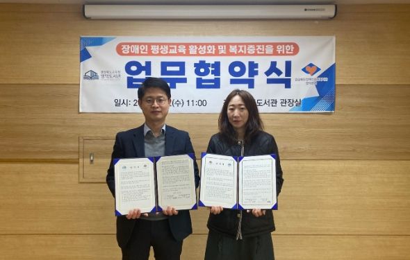 이번 업무협약은 ▲지역장애인의 도서관 이용 편의제공과 취업훈련프로그램 상호 협조 운영 및 지원 ▲기타 교육 활동 협력 등 지역 장애인복지사업 활성화에 대한 내용으로 진행됐다.