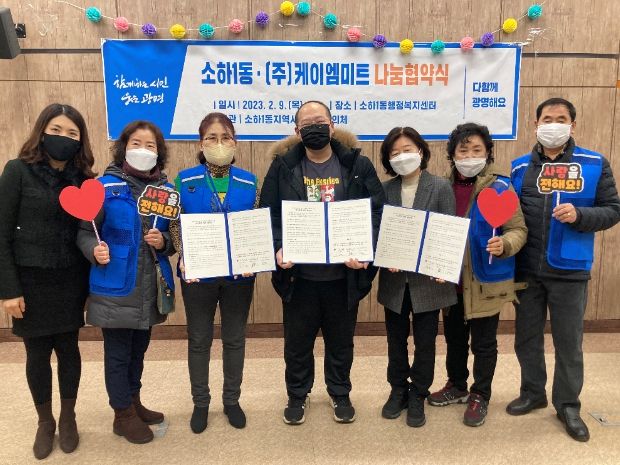 [제주교통복지신문 김강석 기자] 광명시 소하1동 행정복지센터는 나눔 문화 실천을 위해 9일 ㈜케이엠미트(대표 김택현), 소하1동 지역사회보장협의체(위원 박종숙)와 나눔협약을 체결했다.